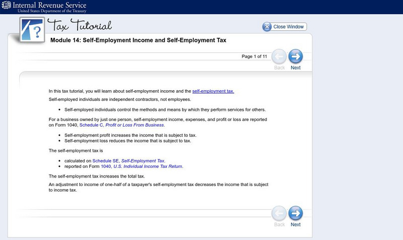 Irs: Tax Tutorial: Module 14: Self Employment Income and Self Employment Tax