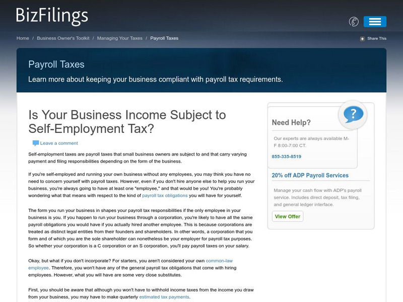 CCH Business Owner's Toolkit answers questions about self-employment taxes because "even if you don't hire anyone else to help you run your business, you're always going to have at least one employee, and that would be yourself."