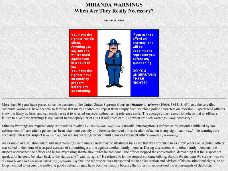 This site discusses the different situations in which the Miranda Warnings are necessary.