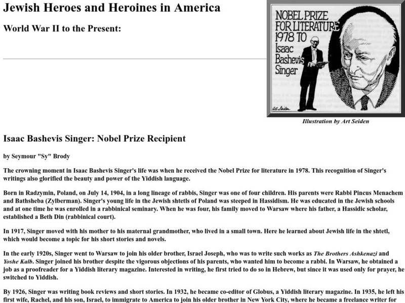 Brief but interesting biography on Isaac Bashevis Singer, who won a Nobel Prize for literature.