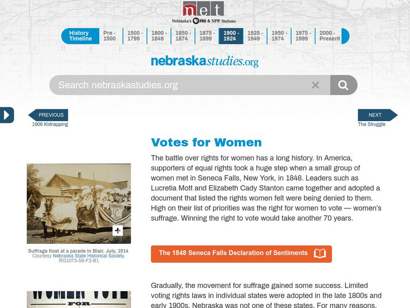 Explore the events leading to women gaining the right to vote in Nebraska.