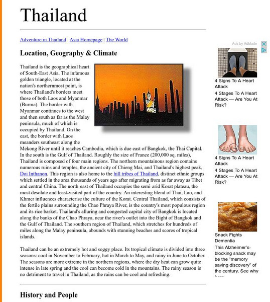 Read this enticing description of the geography of Thailand. You can picture the entire country from these paragraphs. There is alos information about the climate. Hyperlinks take you to additional information.