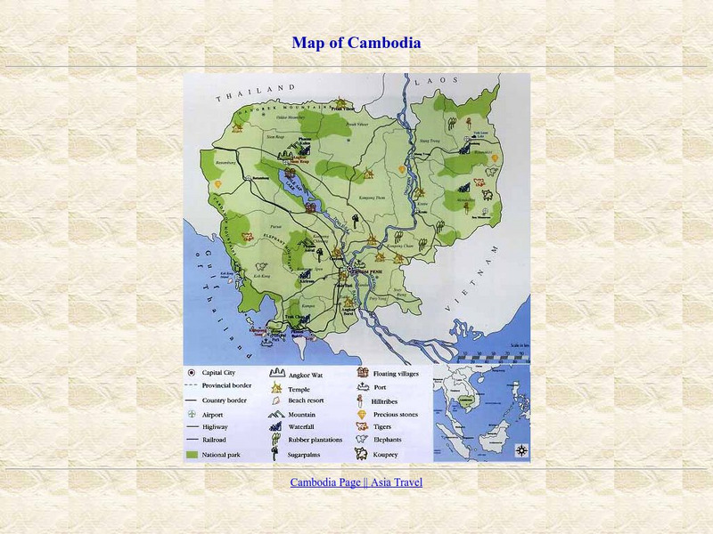 Follow the key on this map of Cambodia from Asia Tour to find the many things to see in this interesting country.