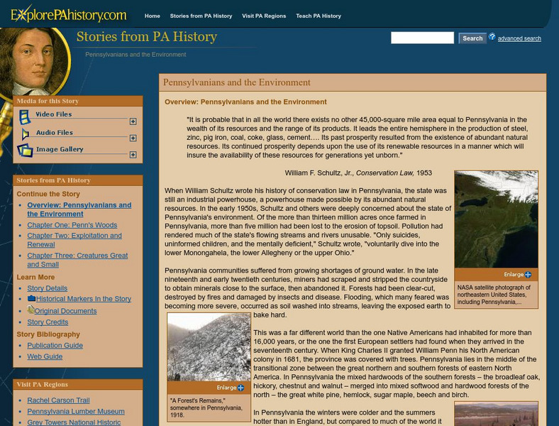 Discover the relationship between Pennsylvanians and the environment through this detailed, historical account which contains links to audio, video, pictorial images of the era.