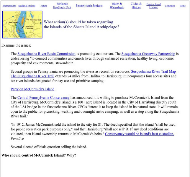 The city of Harrisburg, Pennsylvania and Central Pennsylvania Conservancy are deciding who should own a small island in the Susquehanna River, deeded to the city by it's original inhabitant, James McCormick, in 1912 under the conditions...