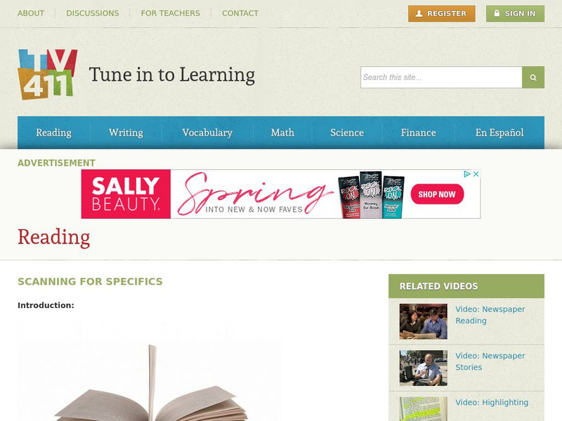 Self-scoring interactive lesson for improving skills in scanning informational texts and charts for keywords and specific details.