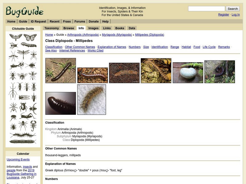 The learning activity is a guide to a better understanding of the millipede. Some topics discussed are the life cycle, habitat, and numbers of the millipede. In addition to information the resource has images of millipedes.