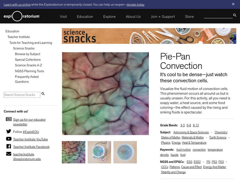 In this experiment, students observe what happens when a pan of soapy, colored water is heated. They will see that convection currents cause the fluid to rise and sink in a localized convection cell.