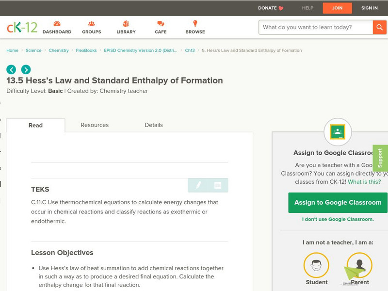 Ck 12: Hess's Law and Standard Enthalpy of Formation