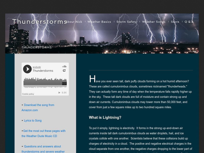 Weather site highlights the severe weather occurrences of thunder and lightning. Click on the link to hear a music clip.