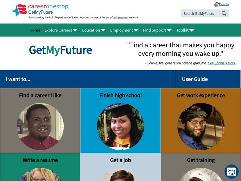 Great site to explore different careers, learn about the skills and education you need for specific careers, get information about growing industries, find out about job training programs, learn how to write a resume, and lots more.