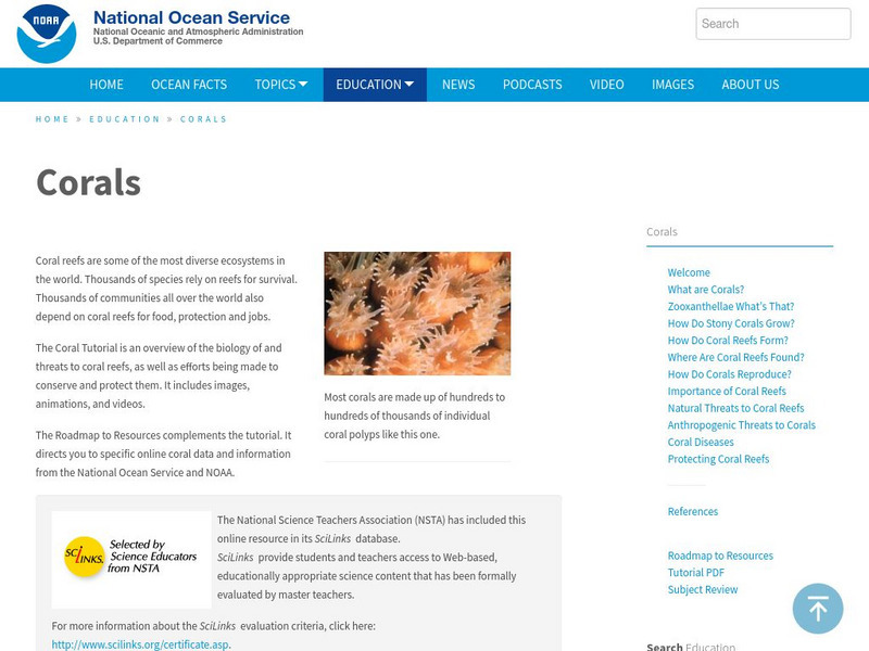 This Coral Tutorial is an excellent resource with diagrams, pictures, animations and short videos. All aspects of coral biology are discussed. As an added benefit, pdf versions of the site are available along with a subject review...