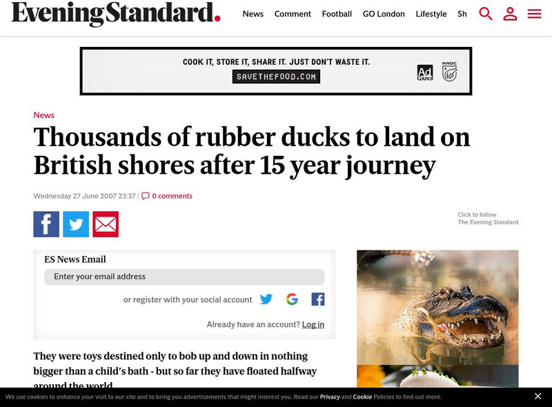 This news article from June '07 describes the arrival in Britain of thousands of rubber ducks that were accidentally dumped into the north Pacific Ocean in 1992. Scientists have been tracking them ever since in order to learn more about...
