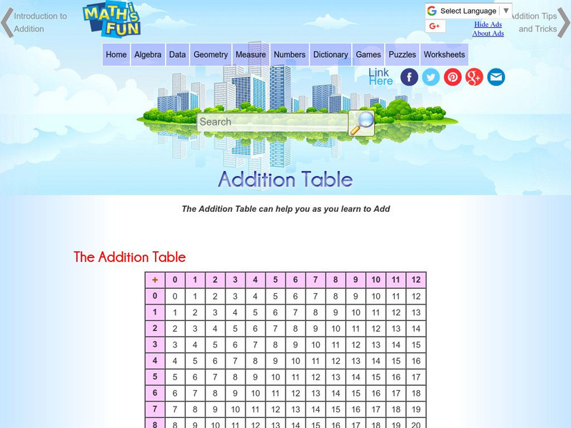 Math Is Fun: Addition Table
