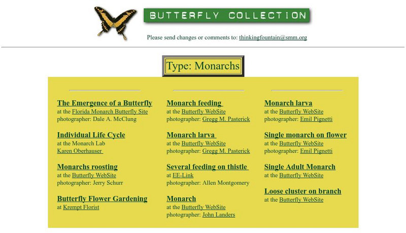 Site full of beautiful butterfly photographs including the emerging of a butterfly. One link also provides detailed information on the life cycle of a butterfly as well as a quiz to complete when finished.
