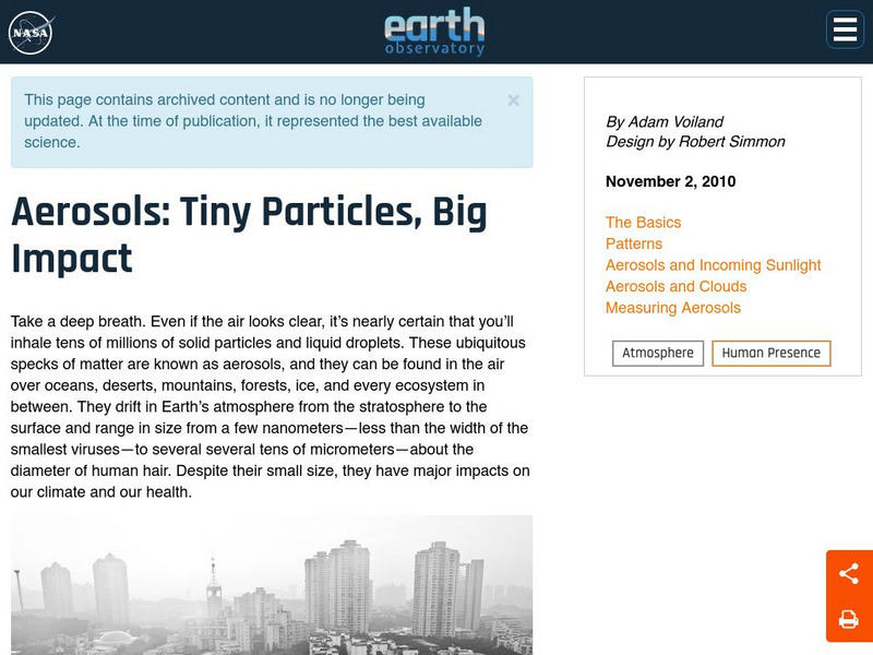 Nasa Earth Observatory: What Are Aerosols? Fact Sheet