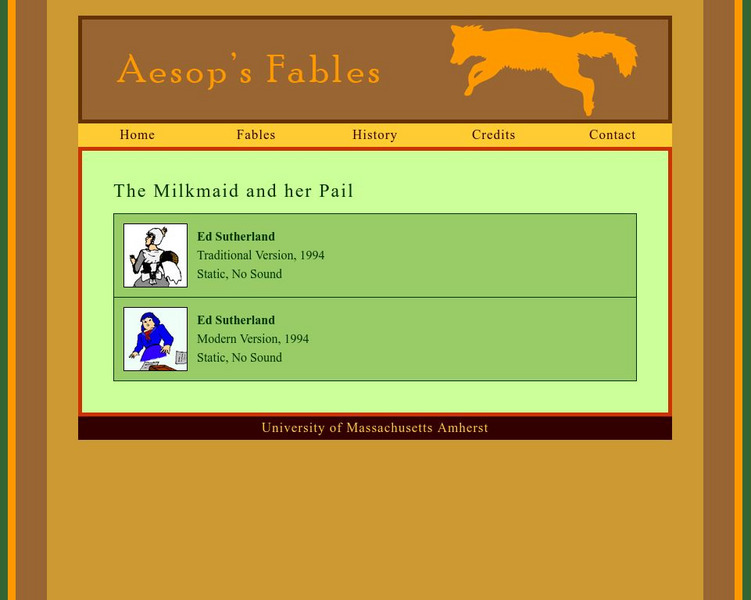 University of Massachusetts: Aesop's Fables: "The Milkmaid and Her Pail"
