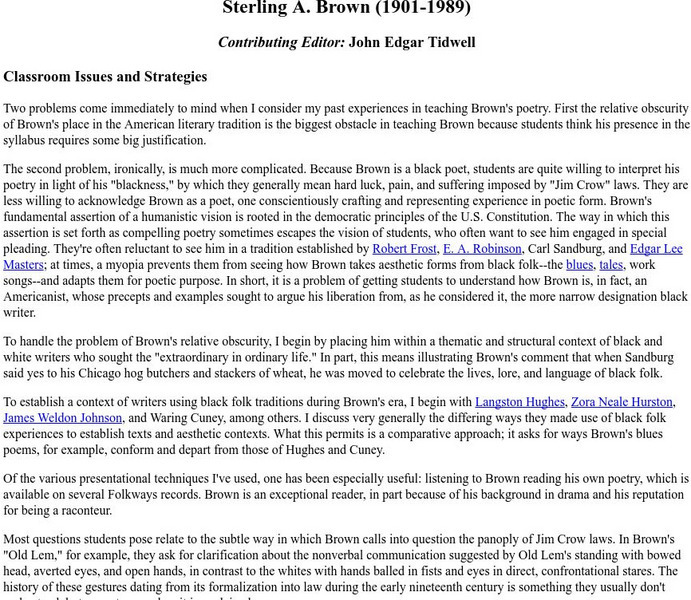 This site, which is provided for by the University at Buffalo, gives the text of three of the poems of this famous Harlem Renaissance author.