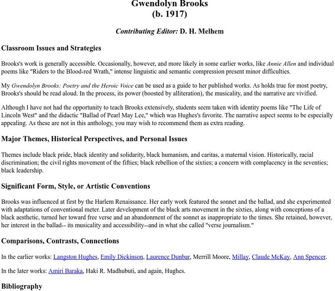Houghton Mifflin: Gwendolyn Brooks, Literary Analysis