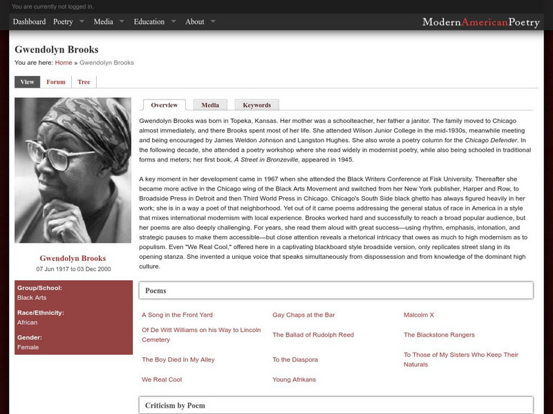 University of Illinois: Modern American Poetry: Gwendolyn Brooks, Biography