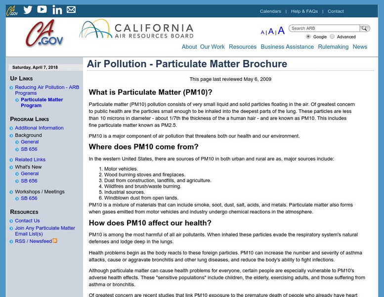 California Air Resources Board: Air Pollution Particulate Matter Brochure