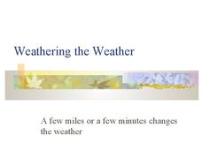 A fine weather poem sets the tone for this short lesson on the natural phenomena that affects weather. Weather topics covered are, air moisture, temperature, pressure, direction/speed, and clouds.