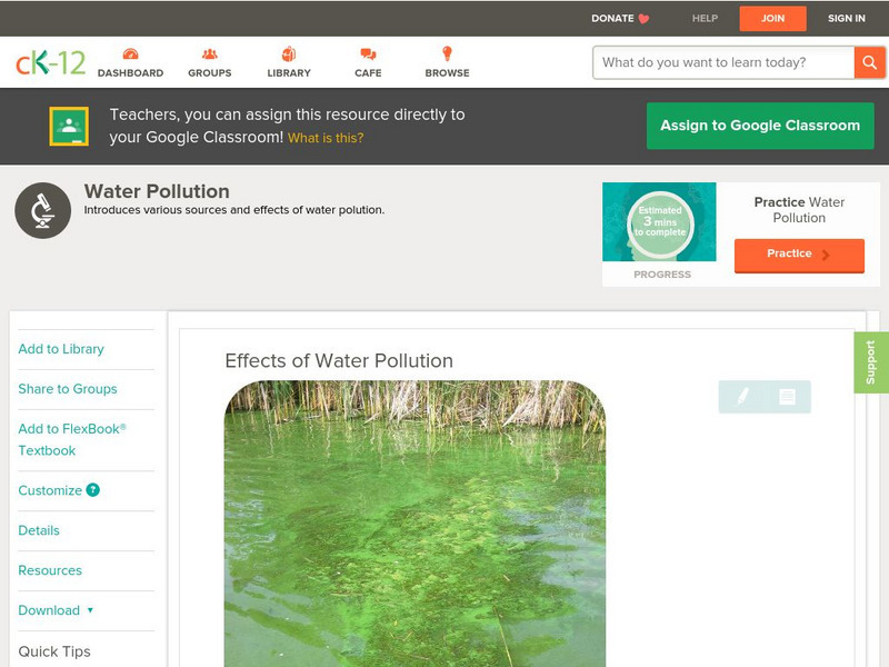 [Free Registration/Login may be required to access all resource tools.] Water pollutants can have an effect on both the ecology of ecosystems and on humans. As a result of water pollution, humans may not be able to use a waterway for...