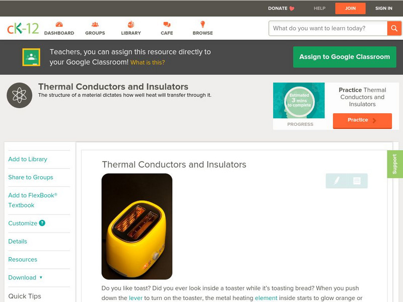 Ck 12: Physical Science: Thermal Conductors and Insulators