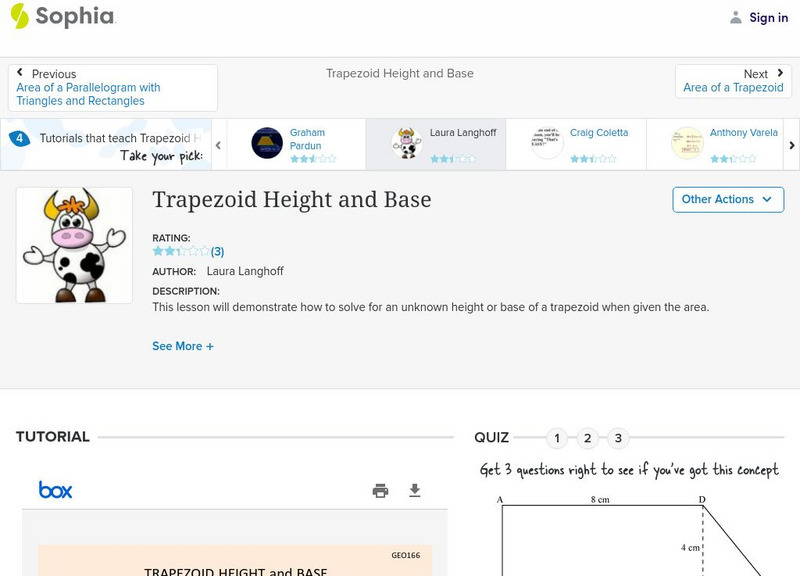 Sophia: Trapezoid Height and Base: Lesson 4