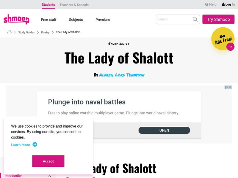 This wonderful poem , The Lady of Shalott, is a poem written about King Arthur. Read the fascinating analysis of this poem in this comprehensive site.