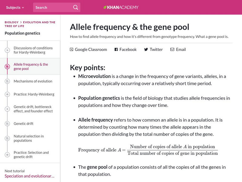 [Free Registration/Login may be required to access all resource tools.] Introduction to macroevolution, microevolution, and population genetics.