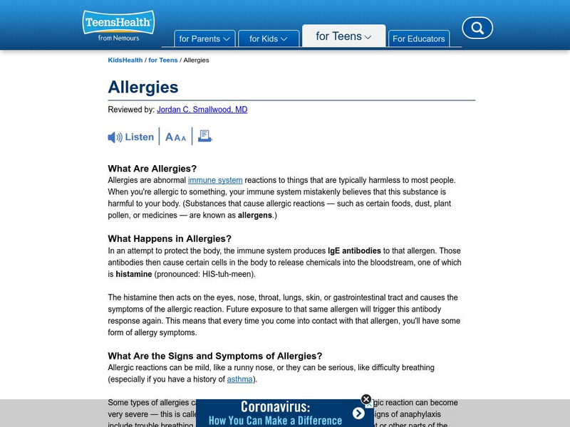 Learn the causes. examples, and treatments for allergies. For auditory learners, a read-aloud feature is also available.