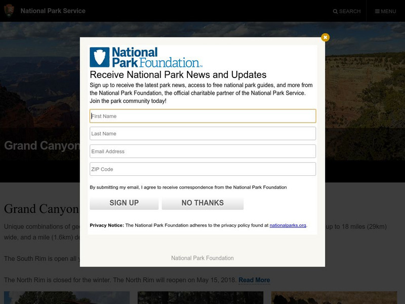 Photos, illustrations, 3D graphs and animations are part of this investigation into the geology and landforms of the Grand Canyon. Learn detailed information on the formation of the canyon, the rock layers, and the prehistoric life that...