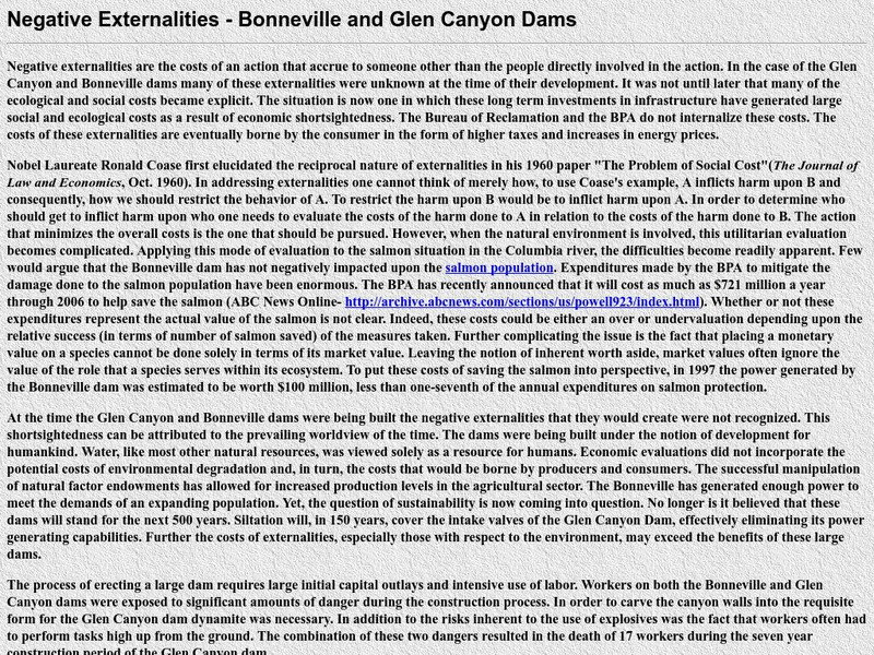 Kenyon College: Negative Externalities Bonneville and Glen Canyon Dams