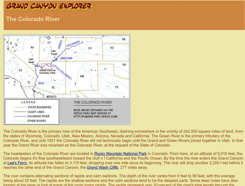 Features basic information on the Colorado River including a map of the states it flows through.