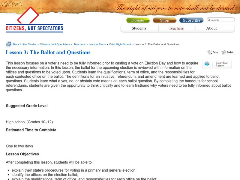 This lesson focuses on a voter's need to be fully informed prior to casting a vote on Election Day and how to acquire the necessary information.