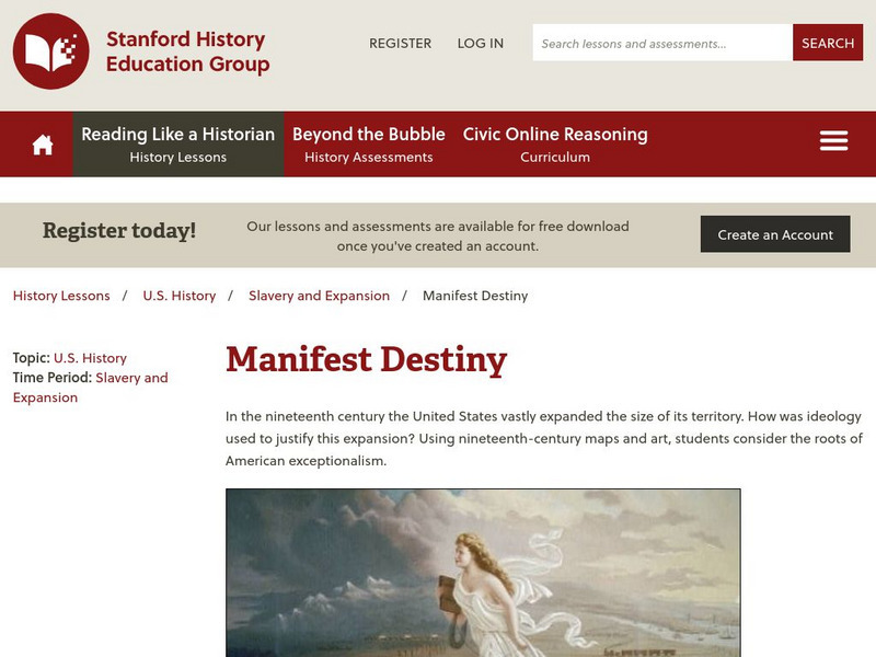 [Free Registration/Login Required] Students use primary source documents to investigate central historical questions. For this investigation students use nineteenth-century maps and art, and consider the roots of American exceptionalism.