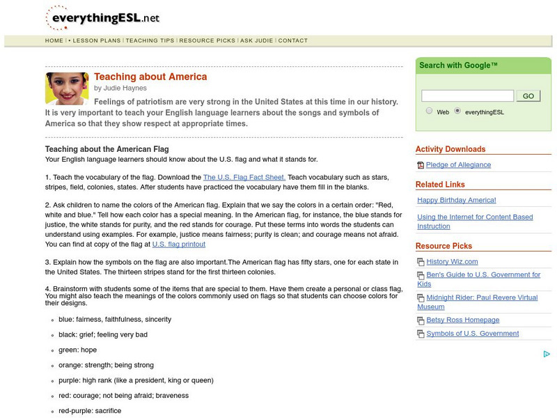 Provides printouts, fact sheets, suggestions and more on teaching any student to know about songs and symbols of America.