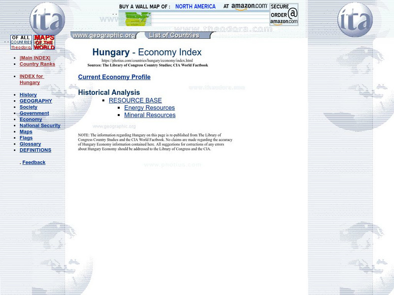 This personal site offers many simple statistics on the country of Hungary, including an economics overview.