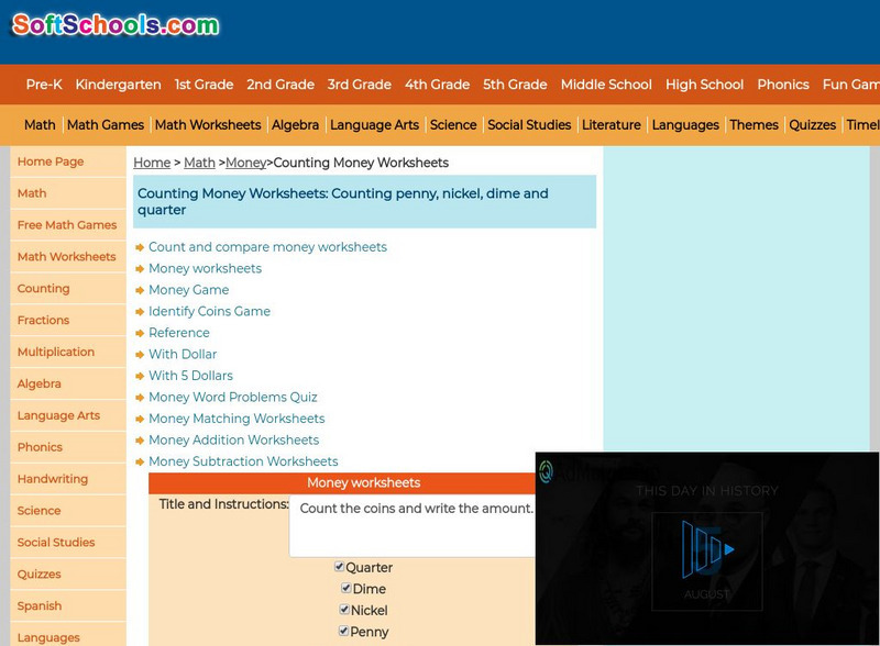 Add the money amount and coins to find the total value of the money. There are ten questions generated randomly.