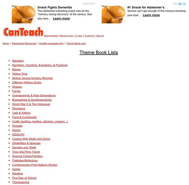 This site has lists of books for teachers and students categorized by theme. Includes alphabet books, sports and folk tales.