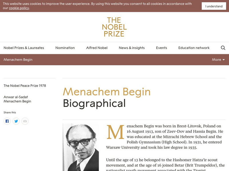 The Nobel Prize: Menachem Begin Biographical
