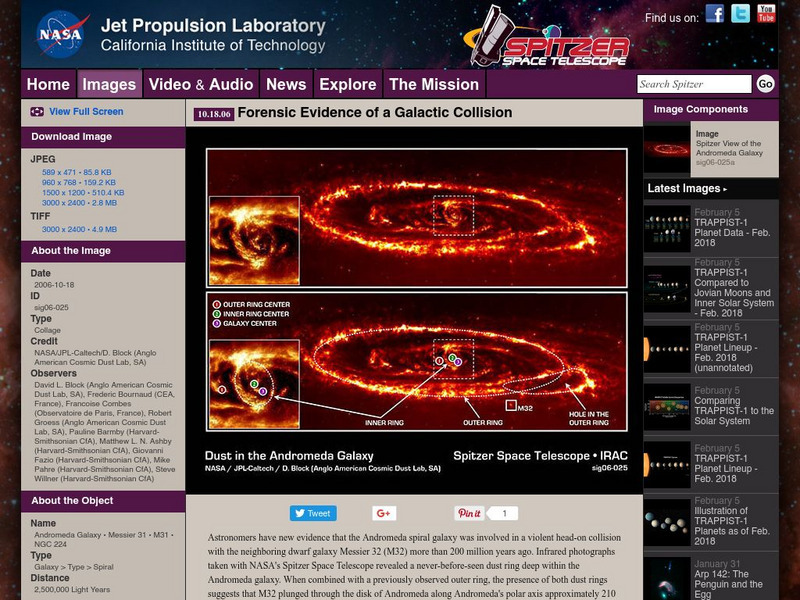 Under the heading, "Forensic Evidence of a Galactic Collision" this site examines specific details of an image displaying the collision involving the Andromeda Galaxy with a neighboring galaxy (Messier 32) more than 200 million years ago.