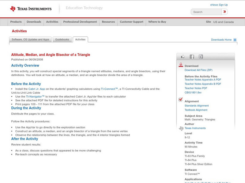 Texas Instruments: Altitude, Median, and Angle Bisector of a Triangle