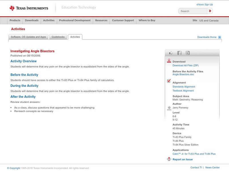 Texas Instruments: Investigating Angle Bisectors