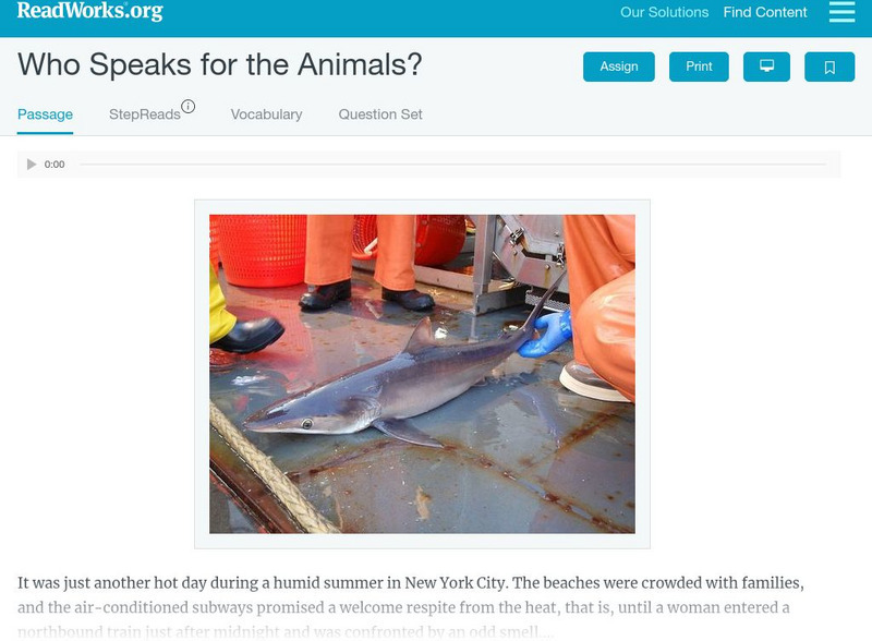 [Free Registration/Login Required] An informational text about how people living in the city relate to wildlife. A question sheet is available to help students build skills in reading comprehension.