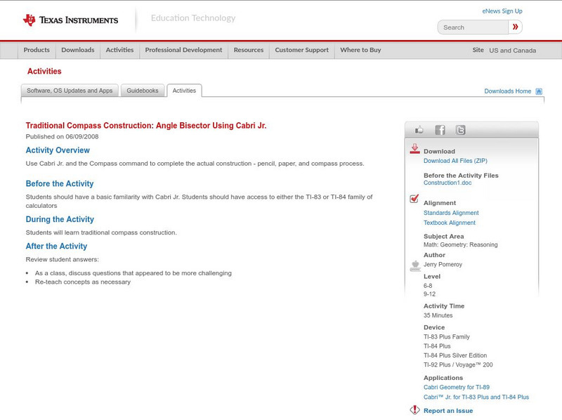 Texas Instruments: Traditional Compass Construction: Angle Bisector Using Cabri