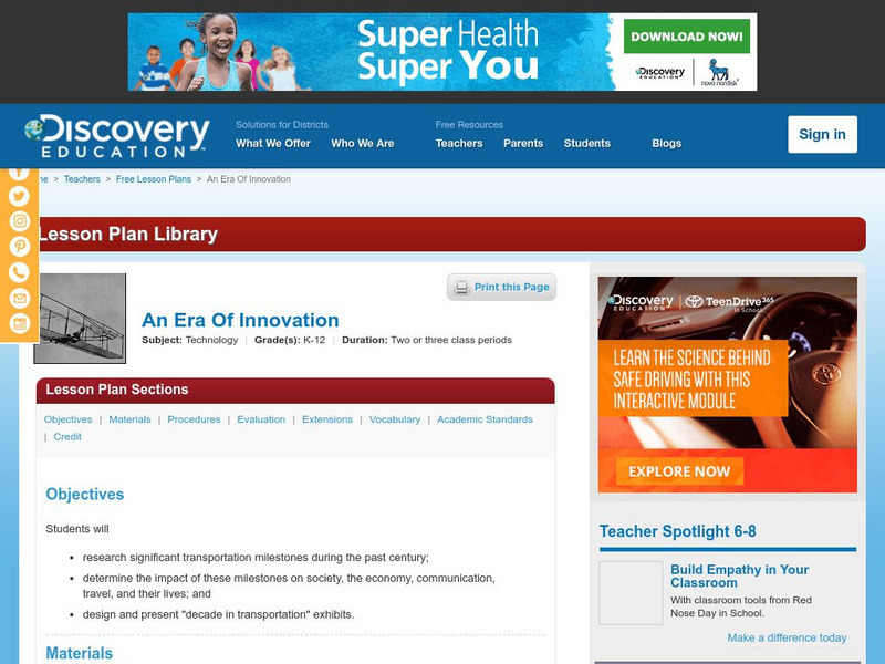 Students research and learn about the history of transportation. Groups design and present a decade in transportation exhibits to share with the class.