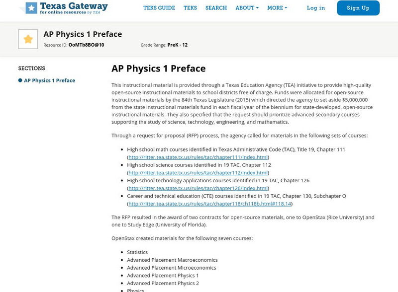 Texas Gateway: Ap Physics 1 Preface