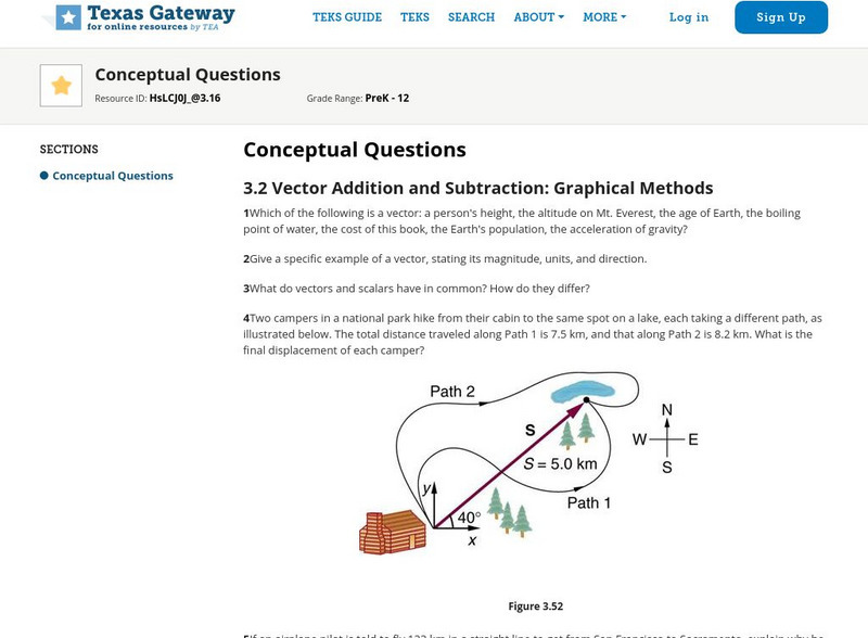 Texas Gateway: Ap Physics: 2.2 Vectors, Scalars, and Coordinate Systems